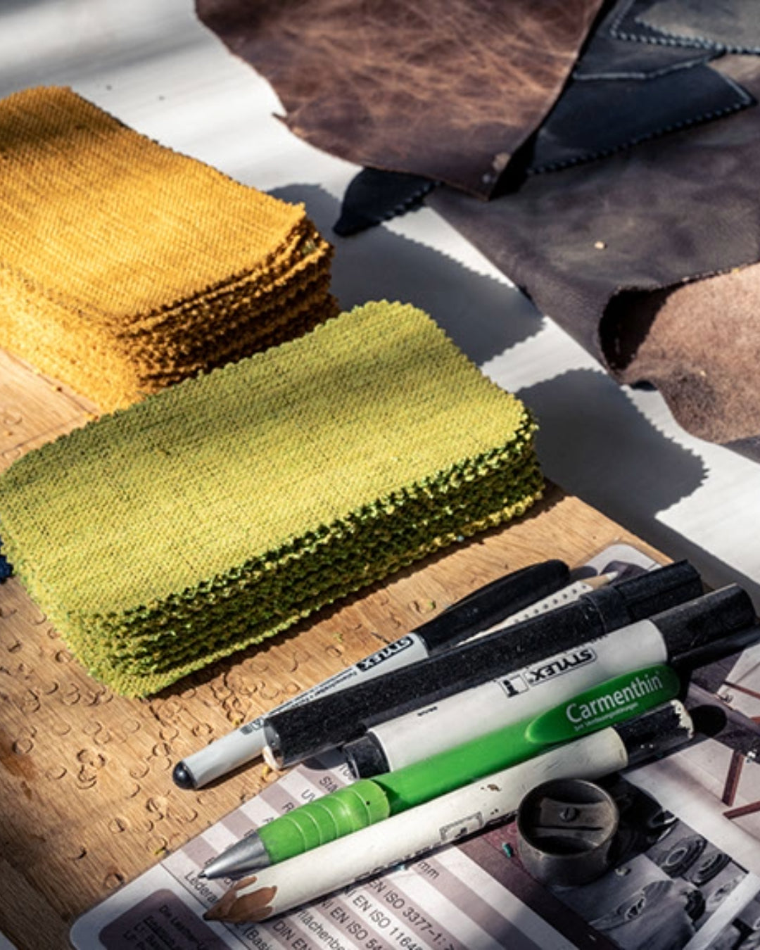 Unsere kostenfreien Stoffmuster sind unsere kleinen Botschafter, die dich auf einer Reise durch Farben, Texturen und Designs mitnehmen. Berühre die unterschiedlichen Stoffe und spüre ihre Griffstärke und Verarbeitung. Beobachte, wie das Licht auf den unterschiedlichen Materialien wie z.B. der Velvet Line spielt. Teste die Wolle auf ihre Qualität oder überzeuge dich selbst davon wie weich und angenehm sich die New Life Serie anfühlt, ein Stoff der aus 100% recycelten Plastikflaschen made in Germany besteht. Und wenn du Leder magst, solltest du dir unbedingt mal unsere hübsche italienische Echtleder-Serie anschauen.