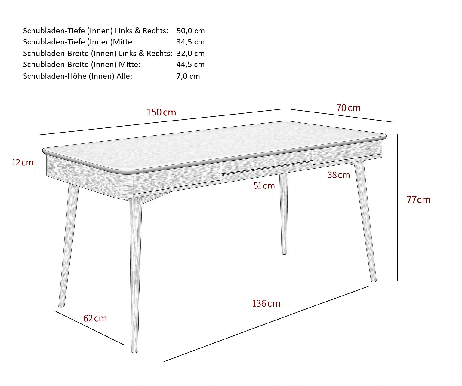 Three practical drawers provide useful storage space, and thanks to the push-to-open system, they can be opened and closed effortlessly. The desk top is available in two versions: made of solid wood for a warm, natural look or made of soft genuine leather that offers an exclusive feel and also has a noise-damping effect. The leather version also provides a surface that is easy on the joints, which increases comfort while working.