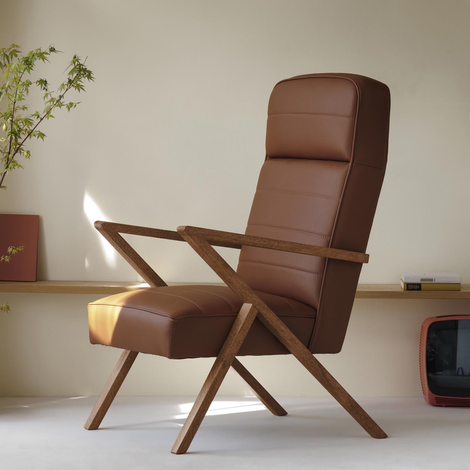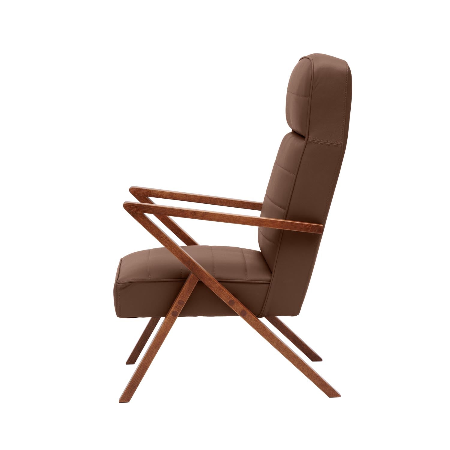 The slender, tapered armrests form a charming contrast to this. They are handcrafted from solid wood and are a real delight to the touch.