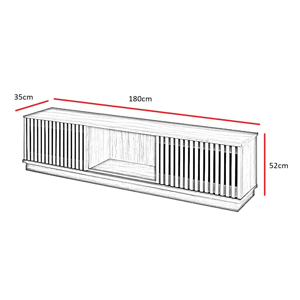 Entdecke die zeitlose Eleganz des Mid Century mit unserem Beam TV Lowboard – ein Designstück, das Funktion und Ästhetik perfekt vereint. Mit seinen Maßen von 180 cm Breite, 52 cm Höhe und nur 35 cm Tiefe wurde es bewusst schlank gebaut, damit es auch in schmalen Wohnzimmern nicht zu viel Platz beansprucht.