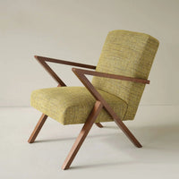 Dank der leicht nach hinten hin abfallenden Sitzfläche, ist eine angenehm lehnende Sitzposition garantiert. In einem reizvollen Kontrast dazu stehen die schlanken, spitz zulaufenden Armlehnen. Diese werden aus massivem Holz in aufwändiger Handarbeit gefertigt und sind wahre Handschmeichler.