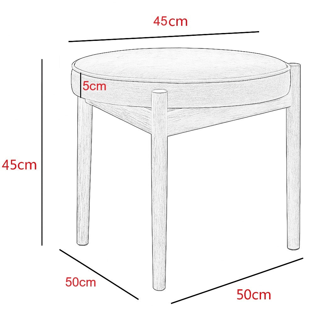 Die Sitzfläche besitzt eine bequeme Memoryschaum Polsterung. Die klare, runde Form setzt einen freundlichen Kontrast zur schlanken Holzkonstruktion und macht den Hocker nicht nur bequem, sondern auch optisch spannend. Das Gestell aus massivem Holz verleiht dem Sputnik Hocker Stabilität und einen warmen, natürlichen Charakter.