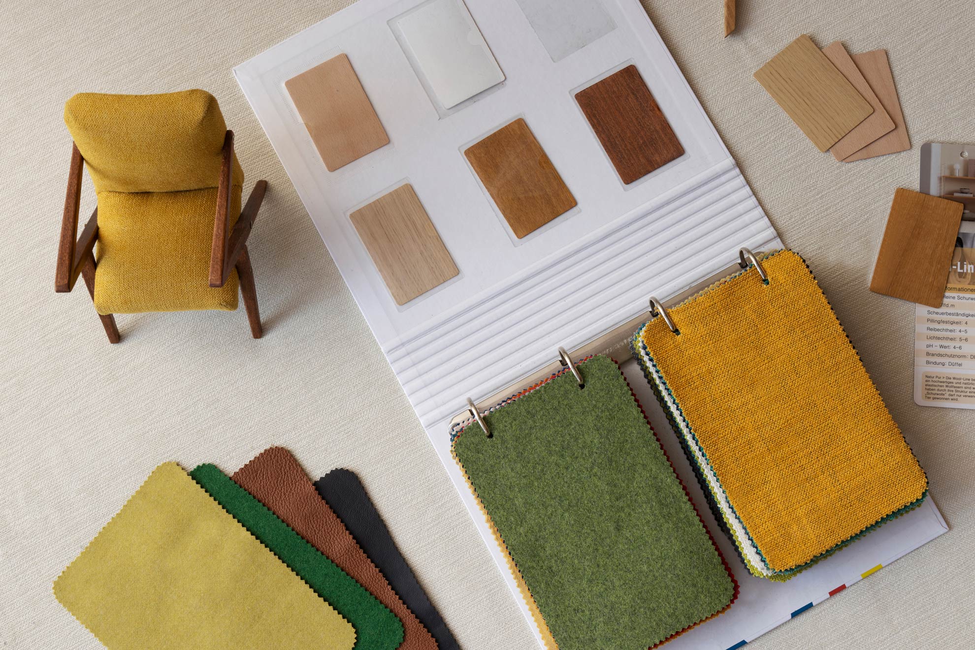 Unsere kostenfreien Stoffmuster sind unsere kleinen Botschafter, die dich auf einer Reise durch Farben, Texturen und Designs mitnehmen. Berühre die unterschiedlichen Stoffe und spüre ihre Griffstärke und Verarbeitung. Beobachte, wie das Licht auf den unterschiedlichen Materialien wie z.B. der Velvet Line spielt. Teste die Wolle auf ihre Qualität oder überzeuge dich selbst davon wie weich und angenehm sich die New Life Serie anfühlt, ein Stoff der aus 100% recycelten Plastikflaschen made in Germany besteht. Und wenn du Leder magst, solltest du dir unbedingt mal unsere hübsche italienische Echtleder-Serie anschauen.